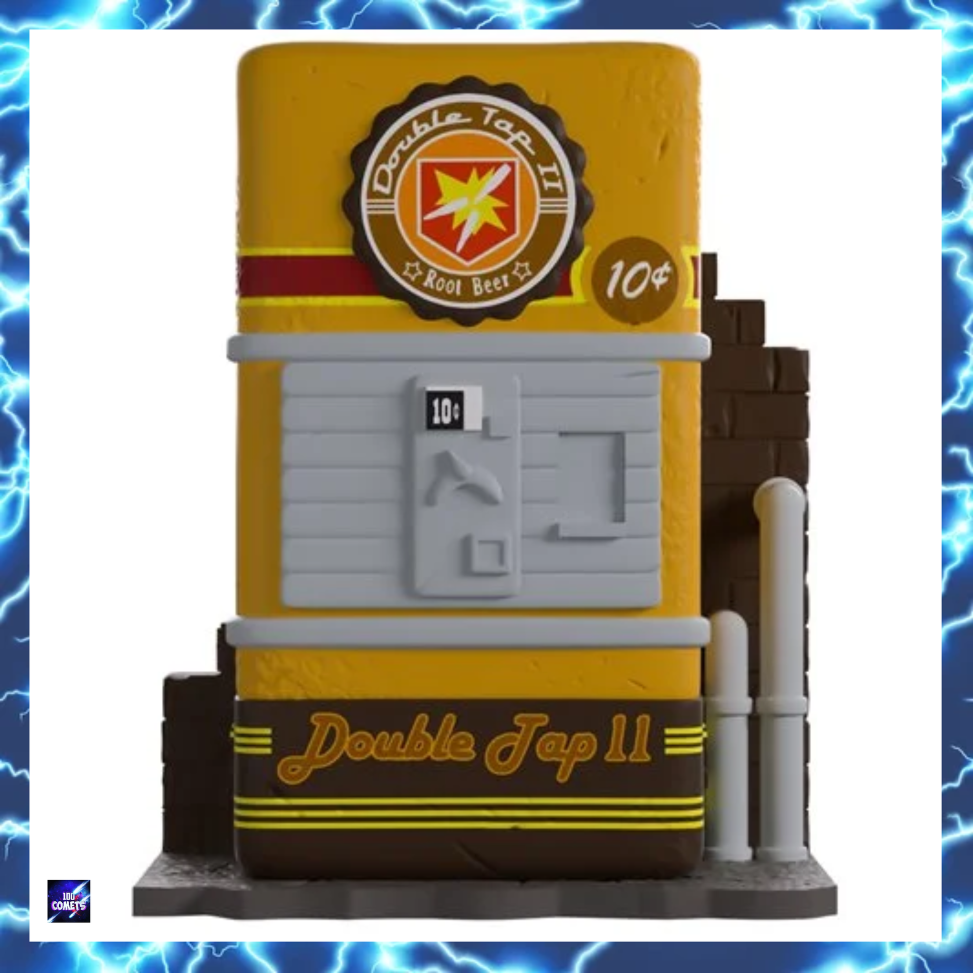 Need to speed up that trigger finger? Well Youtooz has the perfect perk for you! At over 3 1/2-inches tall and sitting against a dark brick wall with a pair of grey pipes running down its side, its rectangular yellow body has rounded corners and a round sign on the front. With red and yellow stripes wrapping around its exterior, a grey coin slot and bottle dispenser sit at its center above the words 'Double Tap II'.